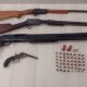 Armas e munições pertenciam ao filho, que está preso. Polícia Civil investiga a origem do armamento