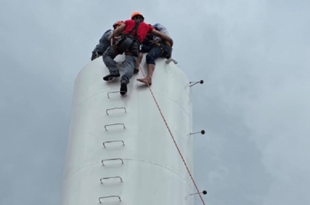 Equipes usaram técnicas de salvamento em altura para retirar o homem, que perdeu a consciência. Veja fotos!