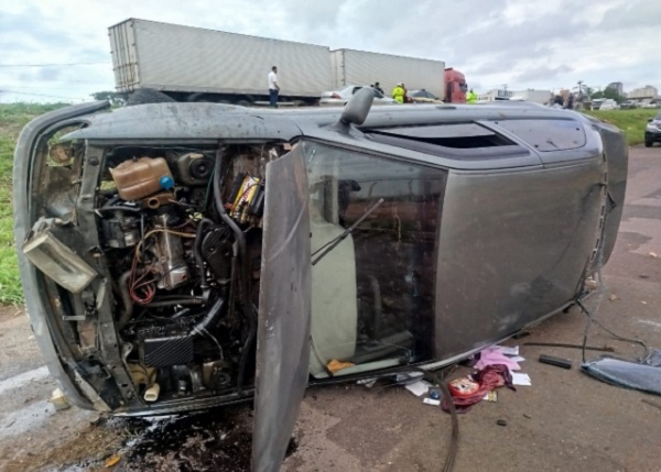 Com o impacto, um dos automóveis foi arremessado para a marginal da rodovia