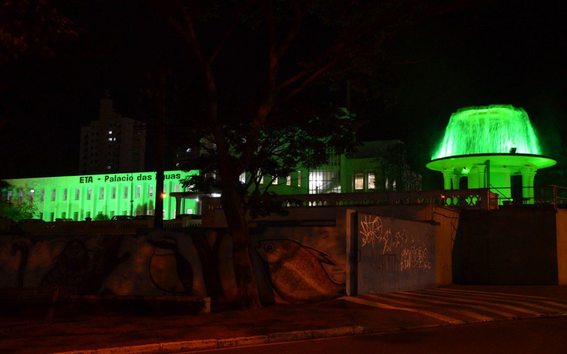 Palácio das Águas fica verde para alertar sobre o câncer colorretal