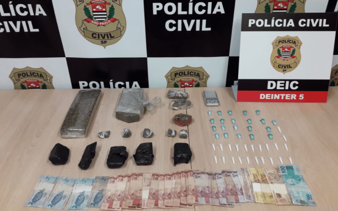 O Deic e a Dise de Rio Preto prendem B.C.A, de 21 anos, por tráfico de drogas. Ele vinha sendo investigado por armazenar e distribuir drogas na região Norte. Durante o flagrante, a polícia encontrou na residência dele, no bairro Solo Sagrado, dois tijolos e vários tabletes de maconha com diferentes tamanhos, além de 43 porções de cocaína em pinos usados em laboratórios, uma balança de precisão e dinheiro resultado da venda de droga.