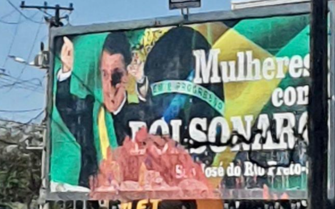 O outdoor faz parte de uma campanha de apoio ao presidente elaborada por um grupo de 40 mulheres bolsonaristas e apartidárias. As organizadoras do grupo estão coletando imagens próximas à peça publicitária para fazer uma denúncia na Polícia e pedir providência.