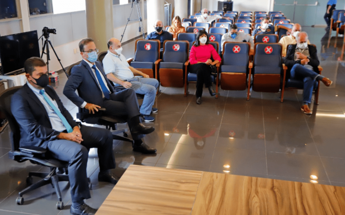 O prefeito de Rio Preto Edinho Araújo, ao lado do secretário de Saúde Aldenis Borim recebeu na tarde desta segunda-feira, 14, prefeitos da cidade de Bálsamo, Bady Bassitt, Cedral, Guapiaçu, Jaci, Mirassol e Neves Paulista para discutir medidas restritivas que deverão ser implantadas na cidade e nos municípios do entorno de Rio Preto.