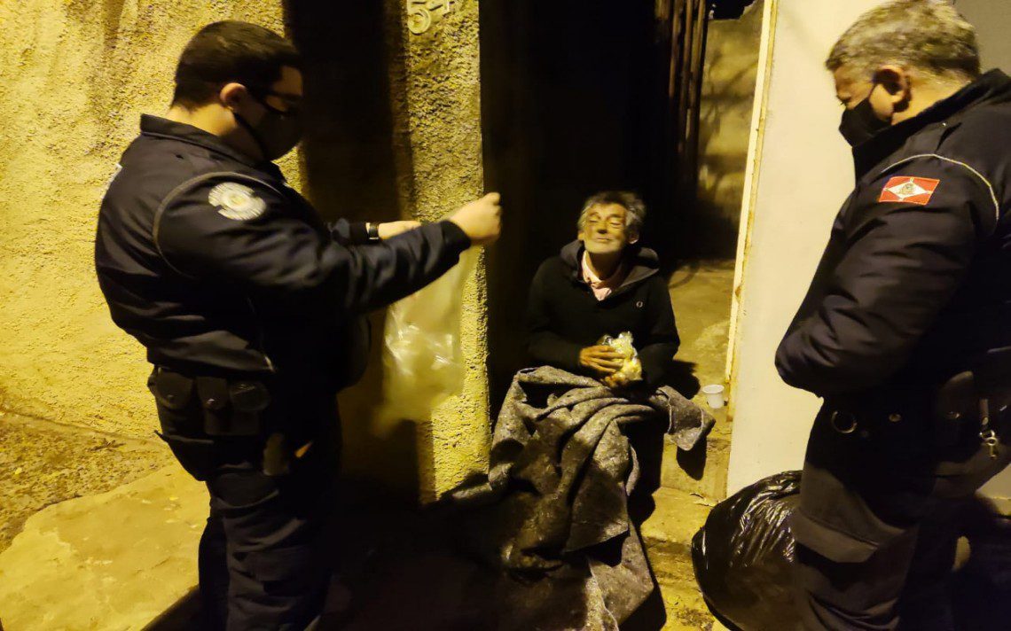 Ao verificarem a situação, eles encontraram o senhor Vicente de 57 anos, que está em situação de rua, é conhecido como antigo morador de Schmitt e sofre com problema de alcoolismo, sendo internado por diversas vezes.  Ele estava deitado na calçada e disse aos guardas que estava com fome e frio.