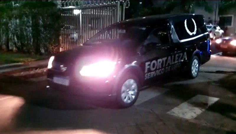 Serviço funeral deixa o condomínio após resgate da vítima. (Imagem: Reprodução)