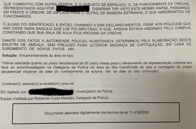 “Nas últimas semanas, rumores sobre ataques a escolas e a universidades têm sido publicados e compartilhados em redes sociais. A criação de falsas notícias como essas tem como objetivo principal produzir apreensão e angústia, promovendo medo e desconfiança em relação ao outro, tendo como efeitos, por exemplo, a restrição da circulação das pessoas nos diversos ambientes sociais e impondo uma postura permanentemente reativa e de pânico para com o outro. Dessas falsas notícias, resultam também o fortalecimento de grupos extremistas interessados na indução do terror social.