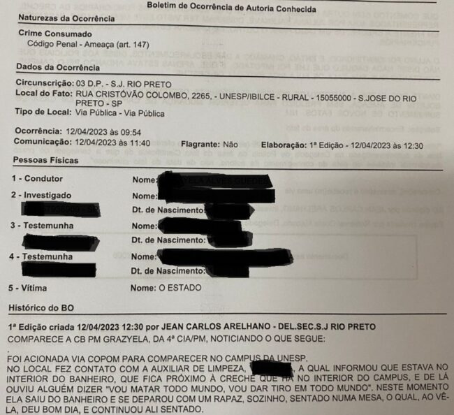 Unesp publica carta aberta após detenção de aluno por suposta ameaça contra creche