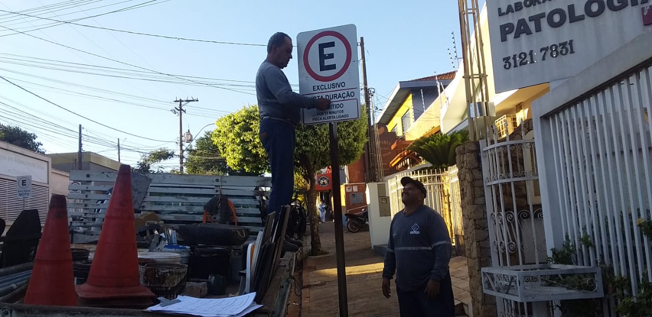 Sinalização vertical identifica vagas exclusivas e de curta duração