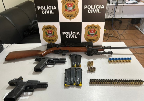 No local, um homem de 41 anos recebeu os agentes e confirmou possuir armamento registrado. Ele apresentou duas pistolas calibre 9mm, uma carabina calibre 22 com mira telescópica e suporte, além de 105 munições — sendo 57 deflagradas e 48 intactas — e cinco carregadores. O investigado se identificou como CAC, sigla usada para caçadores, atiradores e colecionadores, e entregou a documentação das armas.