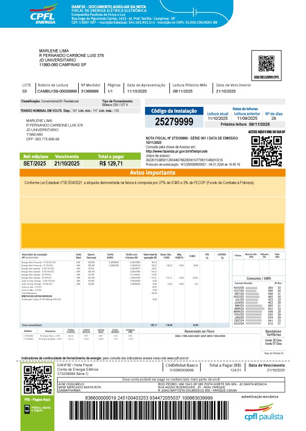 A atualização também atende a uma exigência da Secretaria da Fazenda do Estado, que determinou o novo formato da Nota Fiscal de Energia Elétrica (NF3e). Por isso, as contas agora trazem um segundo QR Code, que direciona o cliente diretamente à nota fiscal digital.