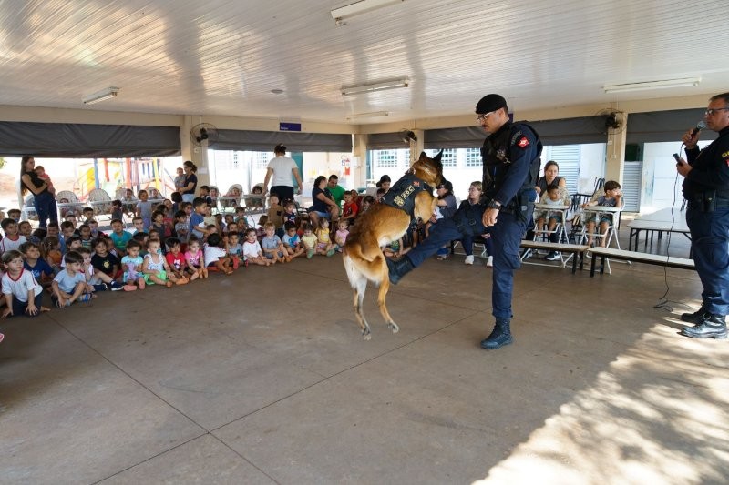 Projeto de integração leva cães policiais às escolas e une educação, cidadania e segurança