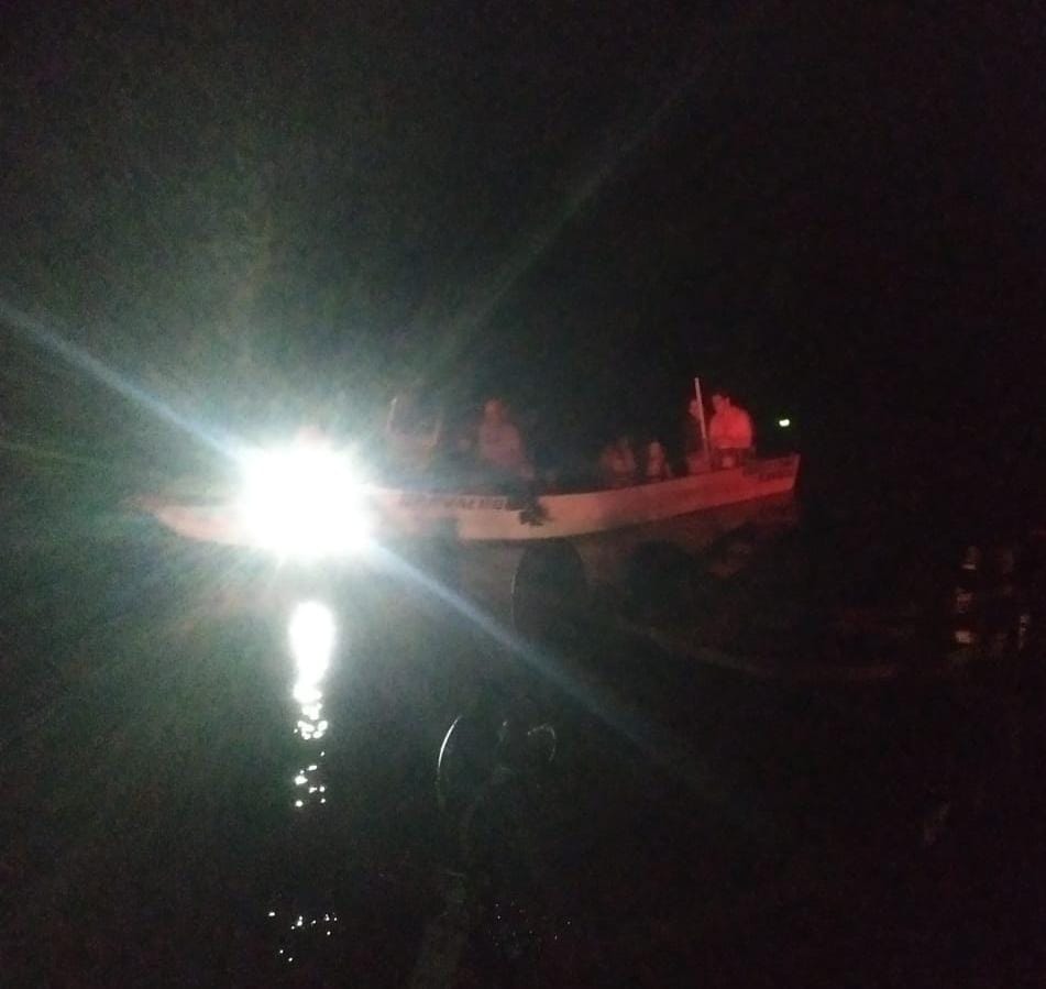 O pedido de socorro foi registrado às 20h08, quando o 190 da PM Ambiental recebeu uma ligação de emergência informando a perda de propulsão da lancha. A chamada caiu antes da obtenção de referências sobre o local, o que levou a central a realizar buscas e cruzamentos de informações para estimar a área onde o grupo poderia estar.