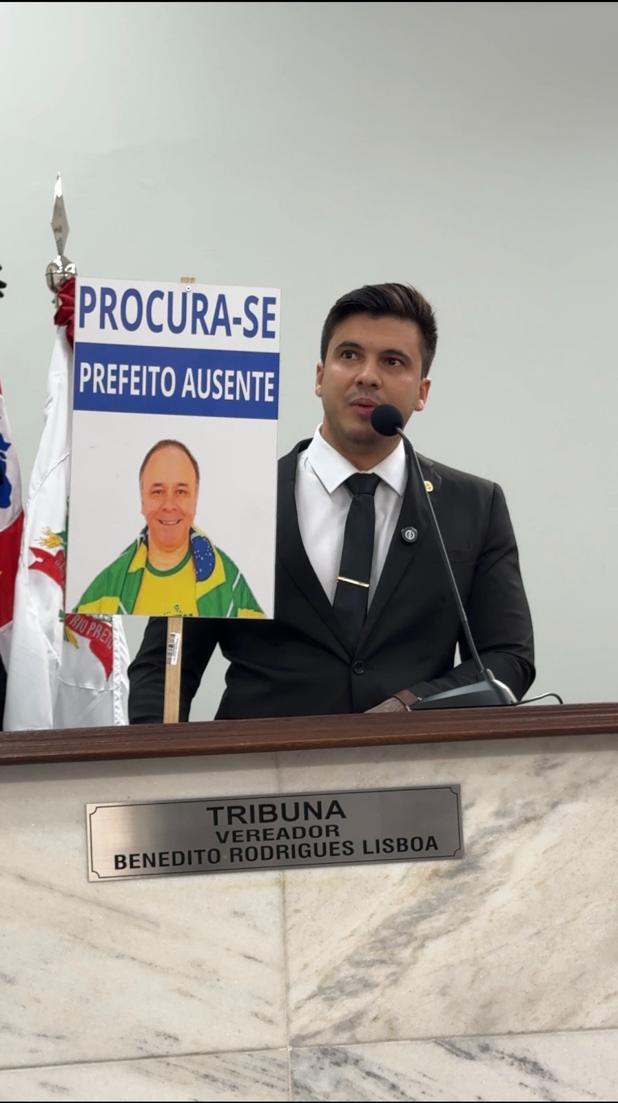 Alexandre Montenegro (PL) voltou a exibir a placa com a cara do prefeito na tribuna. Segurando o objeto, o vereador falou sobre as falhas na administração e fez um alerta bem direto: “Para quem faz pacto com o capeta, saiba que tem juros e correção monetária”. Montenegro ainda aproveitou para fazer alguns trocadilhos bastante sutis sobre as viagens do prefeito à capital paulista. Só para quem tem referências.