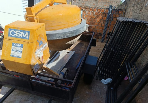Ainda do lado de fora do imóvel, os policiais observaram diversos materiais típicos de obras, como andaimes e uma betoneira. Após checagem, foi constatado que os equipamentos eram produtos de furto.