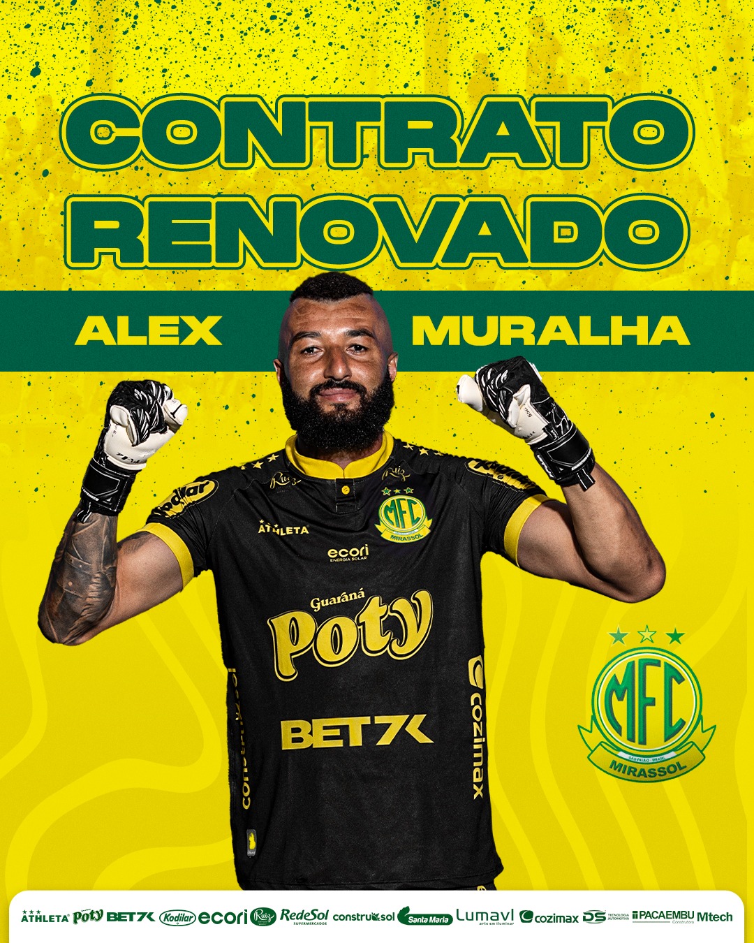 “Goleiro menos vazado da Série B e que passou 2️⃣2️⃣ partidas sem sofrer gols no campeonato, Alex Muralha é o jogador da posição que mais vestiu a camisa do Mirassol na história e vai para mais uma temporada defendendo o Leão!🦁