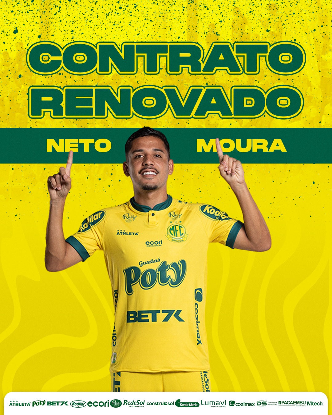 Neto Moura foi comprado pelo Mirassol e deve assinar até o ano de 2026. Nas redes sociais, comemorou-se a permanência do volante.