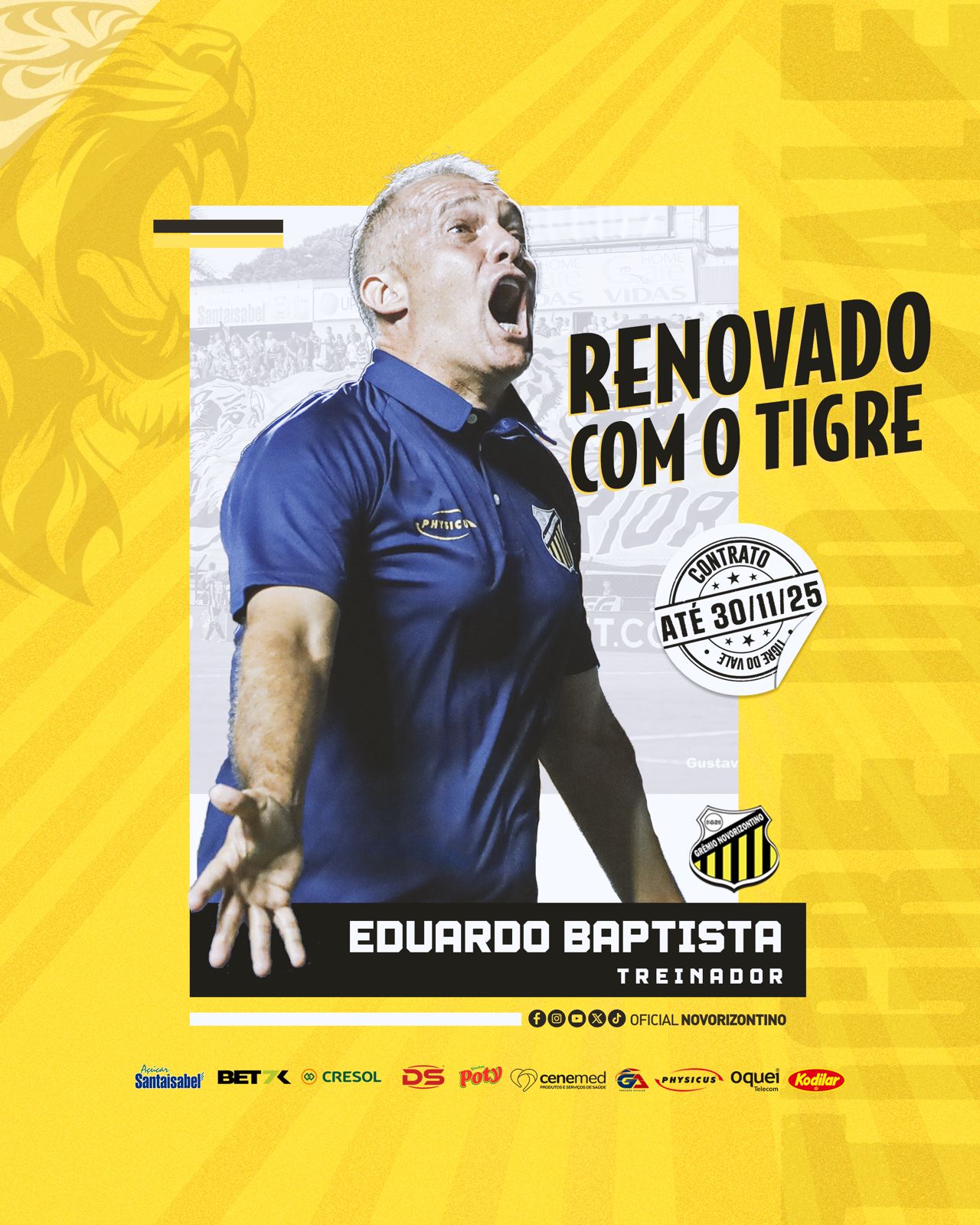 O Grêmio Novorizontino renovou o contrato com o técnico Eduardo Baptista para os desafios da temporada 2025. Com campanhas vitoriosas e números expressivos à frente do Tigre do Vale, Baptista conquistou o vice-campeonato do Paulistão A2, recolocando a equipe da região na elite, onde atingiu a inédita semifinal do Paulistão, eliminando o São Paulo nos pênaltis e garantindo vaga na Copa do Brasil.