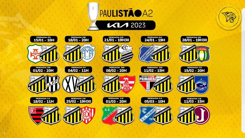 Na primeira fase o Novorizontino ainda jogará em casa contra as equipes do São Caetano, Ponte Preta, Linense, Rio Claro, Noroeste e Juventus. Como visitante enfrentará Lemense, XV de Piracicaba, Primavera de Indaiatuba, Oeste em Barueri, Velo Clube em Rio Claro e o Taubaté, em Taubaté.