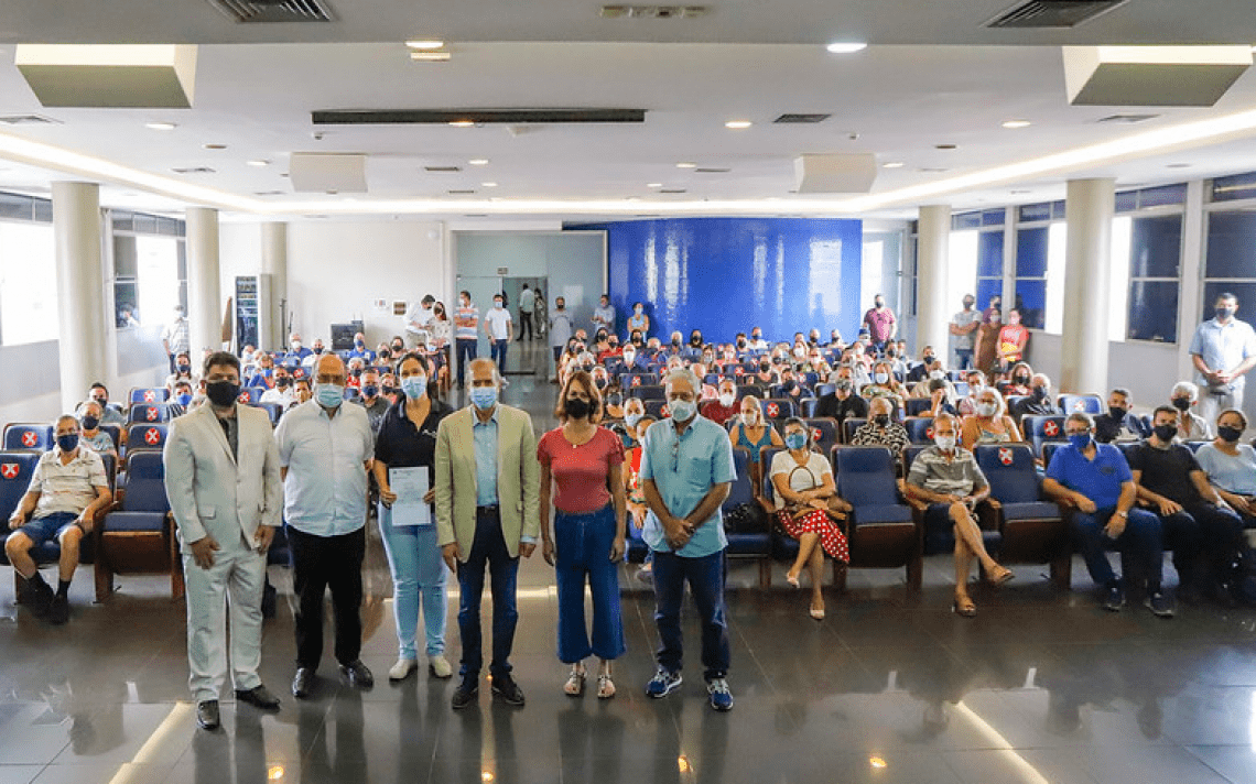 E entrega novos títulos de propriedade a 347 famílias em cerimônia no auditório do nono andar
