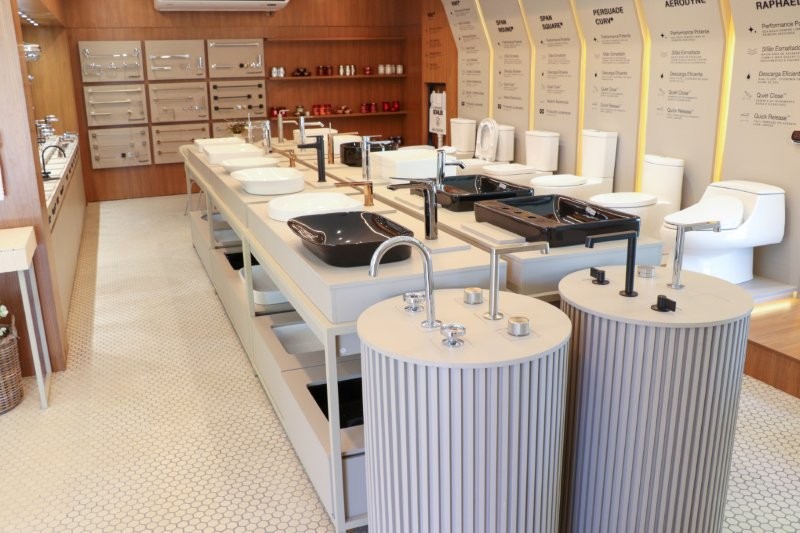 A nova unidade, localizada na Avenida Benedito Rodrigues Lisboa, no Jardim Vivendas, traz produtos que unem tecnologia, design e sustentabilidade. Entre os destaques estão o Anthem+™ Digital Showering System, que permite controle preciso de temperatura, pressão e até som ambiente, e a banheira Stillness™, inspirada em práticas de meditação japonesa, que combina hidroterapia, iluminação suave e vapor.