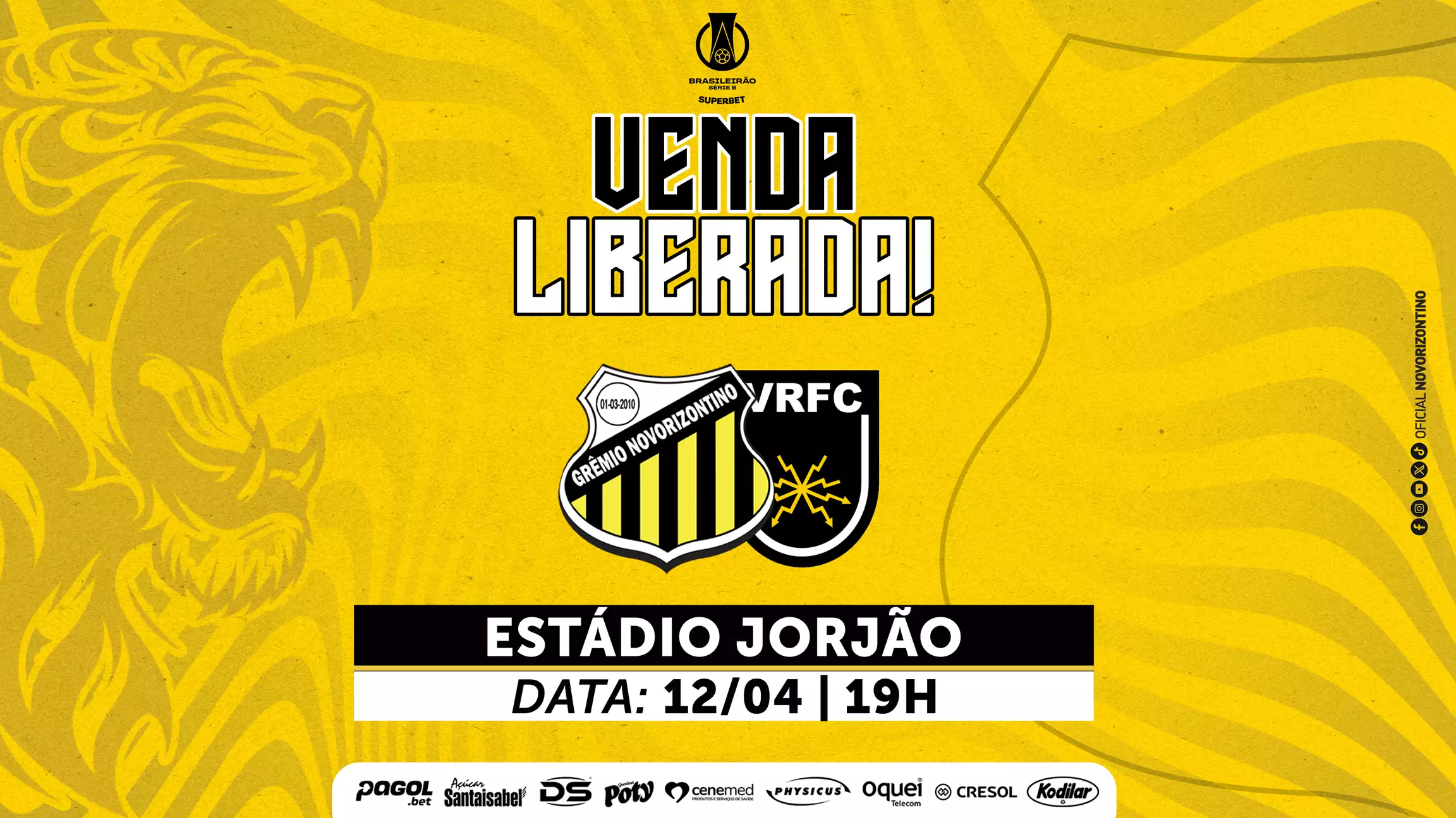 O Novorizontino faz a estreia em casa no Brasileirão B neste sábado (12), às 19h, contra o Volta Redonda, no Estádio Jorge Ismael de Biasi, em Novo Horizonte, e quer contar mais uma vez com o apoio do torcedor da cidade e da região na sua caminhada rumo à elite do futebol nacional. Os ingressos para partida já estão à venda de forma on-line pelo site da Total Ticket e presencialmente na Loja Sport Billy, desde a última terça-feira (8).